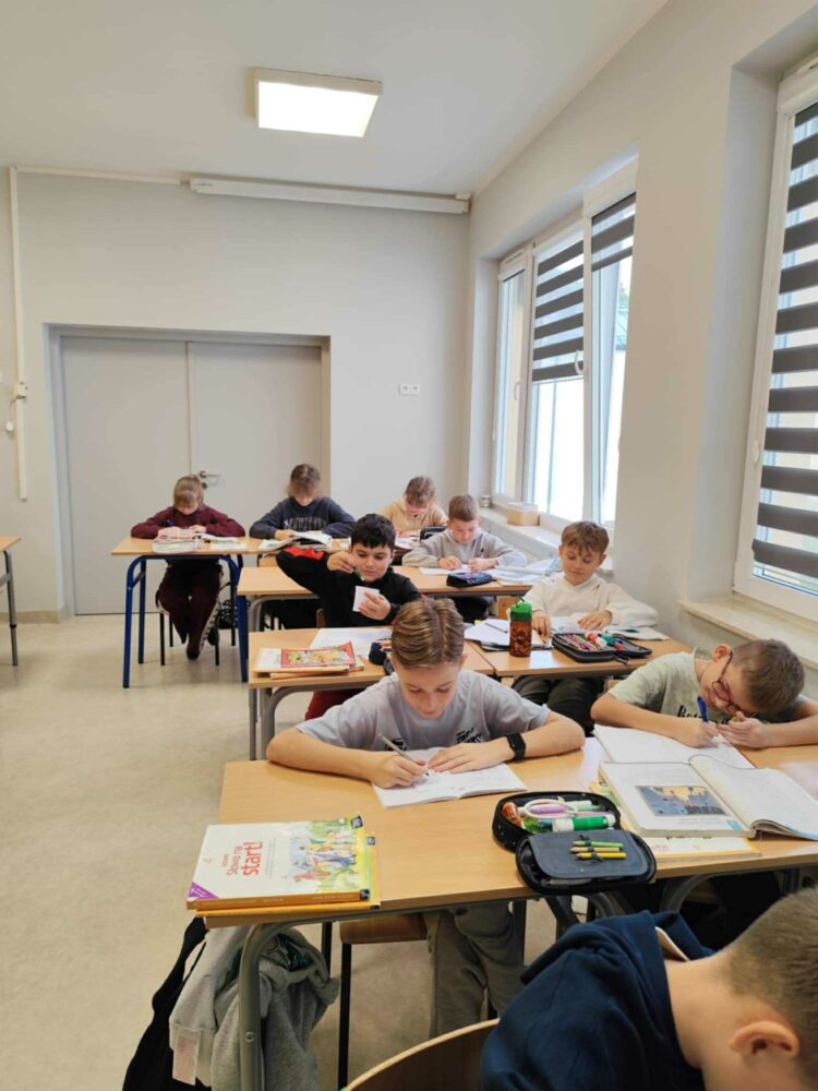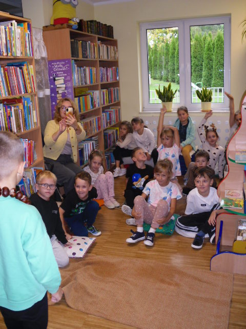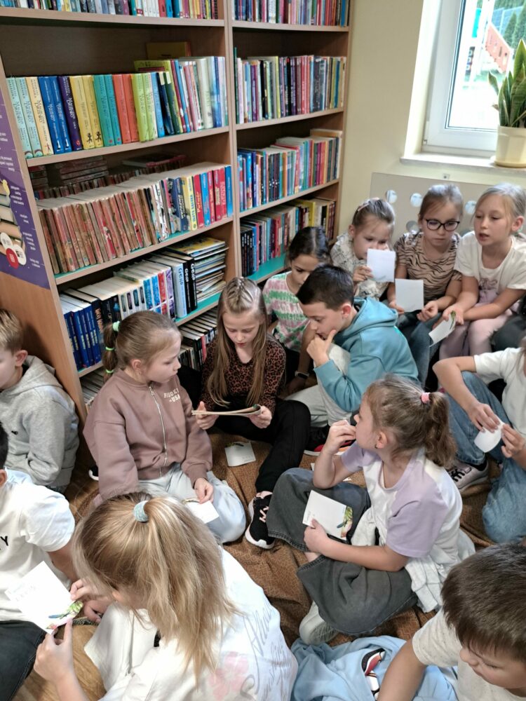 W ramach „Przerwy na czytanie” – w przeszłość przenieśli się uczniowie klasy I B i klasy II. Wraz z wychowawczyniami: p. Moniką Stawarz i p. Beatą Łabęcką wysłuchali w bibliotece dwa opowiadania czytane przez nauczyciela bibliotekarza. Najpierw rozdział z książki Marii Kownackiej