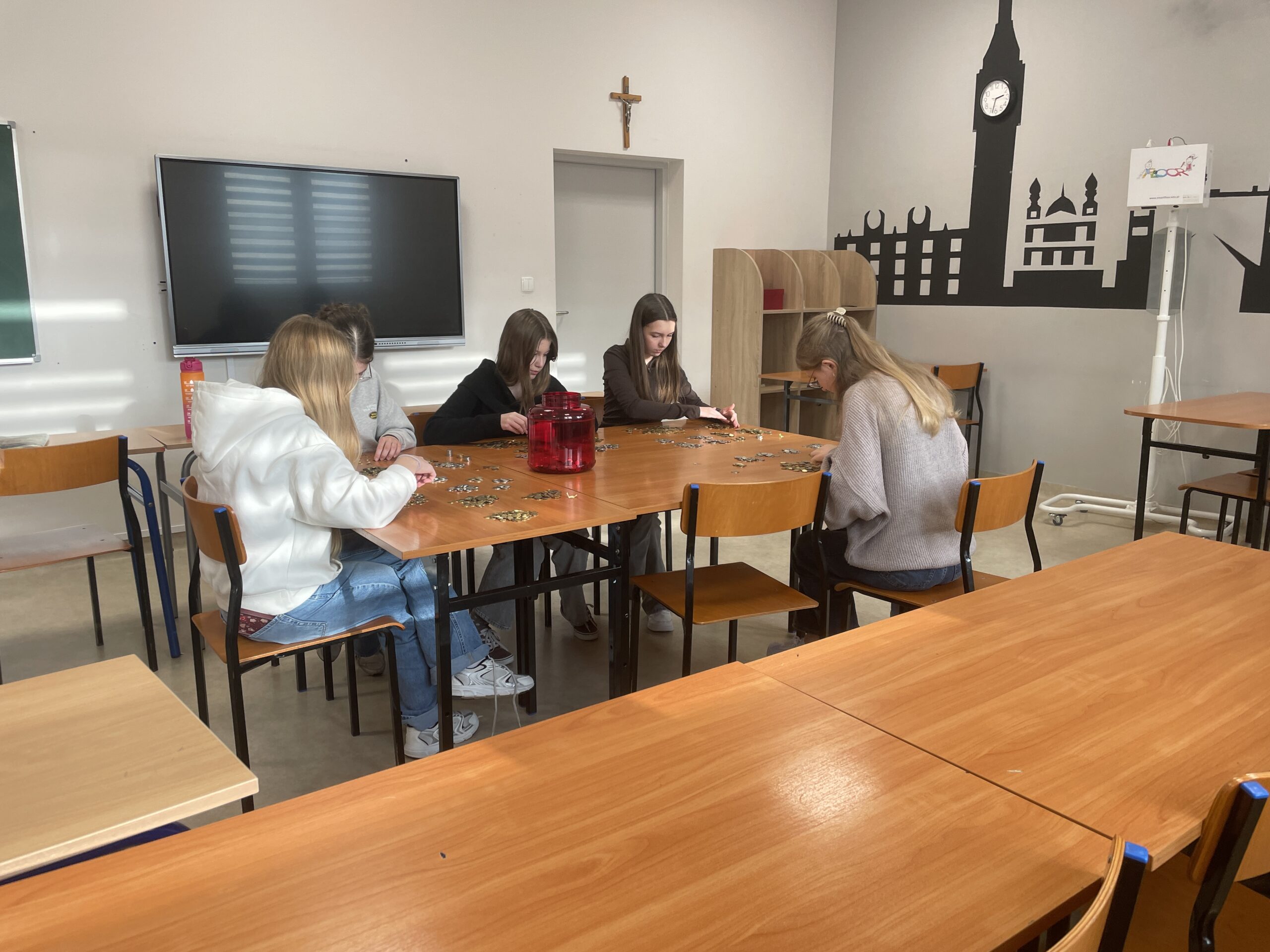 Jak co roku uczniowie i nauczyciele z naszej szkoły dołączyli do ogólnopolskiej akcji Góra Grosza, której organizatorem jest Towarzystwo „Nasz Dom” z siedzibą w Warszawie. W zbiórkę monet do puszek zaangażowali się uczniowie z klasy 3 i 5a, a ich posegregowaniem i policzenie uczniowie z klasy 8. W tym roku udało nam się usypać górę monet o wartości 354 złotych. Zebrane pieniądze zostały przekazane Towarzystwu „Nasz Dom” za pośrednictwem Poczty Polskiej.