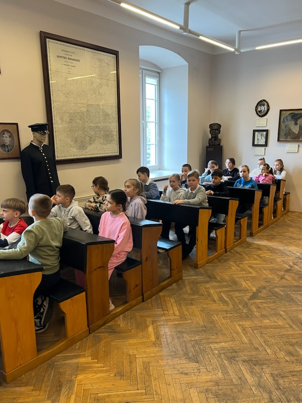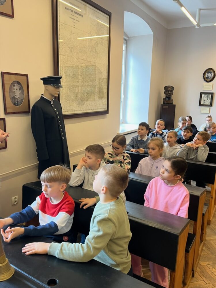 Spacerując po korytarzach słynnej „Górki”, uczniowie poznali realia nauki pod zaborem rosyjskim. To była szkoła pełna dyscypliny i rygoru. Dowiedzieliśmy się, że w tamtych czasach niemal wszystkie lekcje – od matematyki po przyrodę – odbywały się w języku rosyjskim. Nauczyciele bacznie obserwowali uczniów, starając się ograniczyć wpływ polskiej kultury i tradycji. Za rozmowę w języku ojczystym uczniom groziły kary, z których najłagodniejszą był pobyt w szkolnym karcerze.