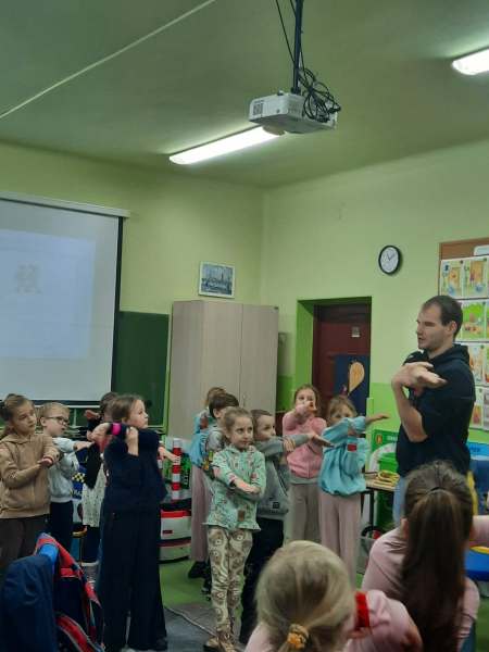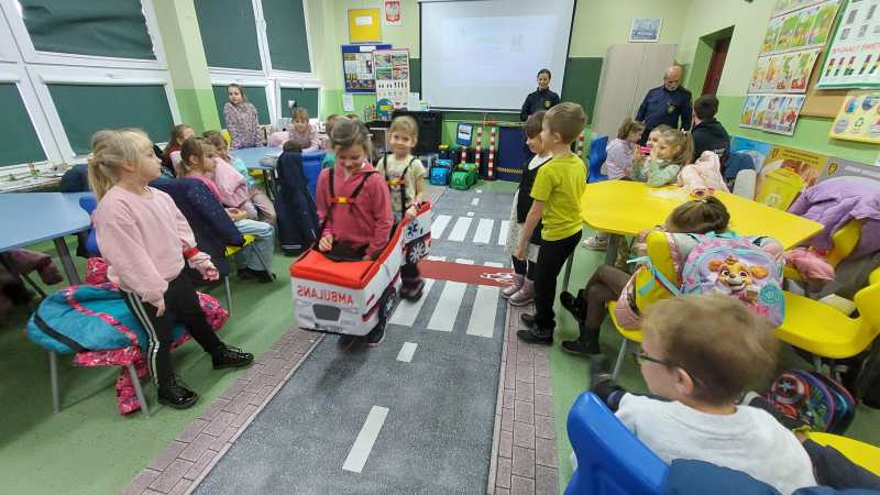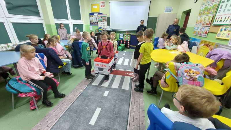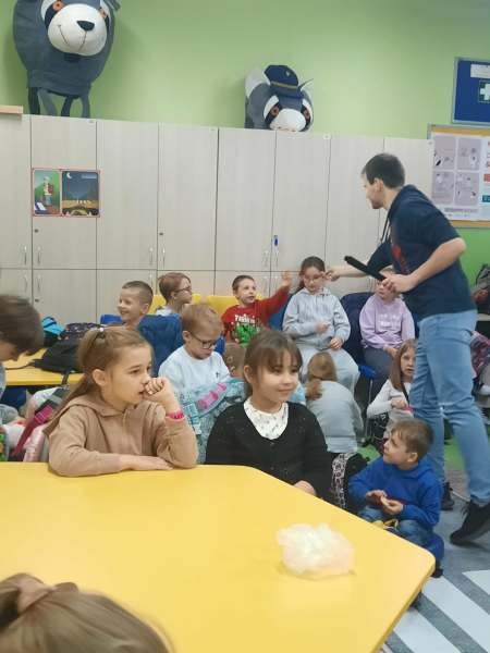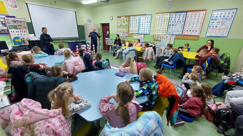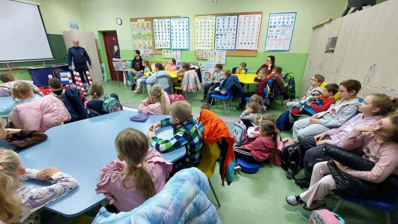 Pierwszoklasiści w sali edukacyjnej SMIKLAND